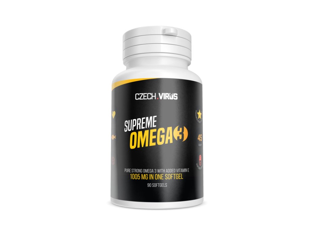 Czech virus SUPREME OMEGA 3 je vysoce koncentrovaná směs přírodního rybího oleje a přírodního vitamínu E. Poměr EPA a DHA je v tomto produktu vyšší – 33/22, což je téměř dvojnásobek oproti běžným Omega-3 produktům s poměrem 18/12. Tento produkt je ideální pro ty, kteří potřebují vyšší množství omega-3 mastných kyselin, ale nechtějí užívat velké množství kapslí denně. Uživatelé takto získají vysoké dávky EPA (kyselina eikosapentaenová) a DHA (kyselina dokosahexaenová) efektivněji.