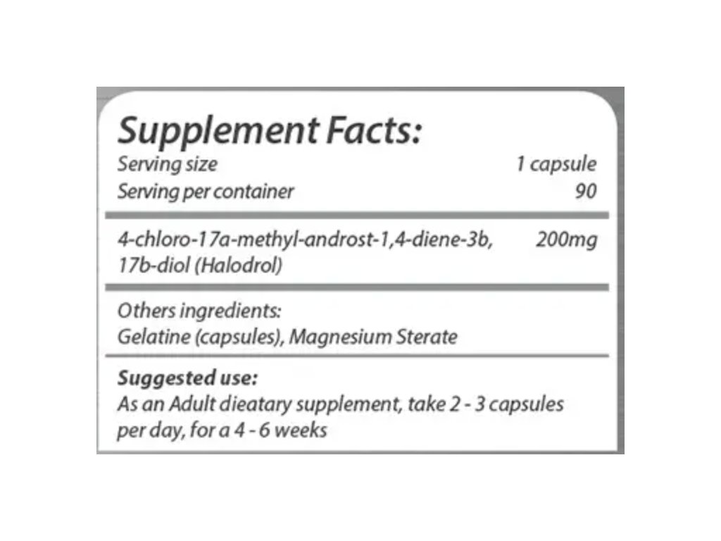 Halodrol (4-chlor-17a-methyl-androst-1,4-dien-3-17-diol): 30 mg