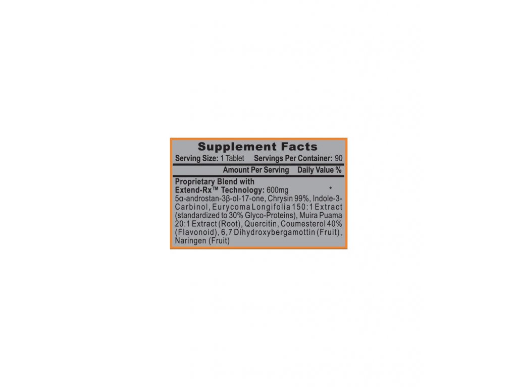 5a-androstan-3b-ol-17-on, chrysin 99%, indol-3-karbinol, extrakt Eurycoma Longifolia 150:1 (standardizovaný na 30% glykoproteinů), extrakt Muira Puama 20:1 (kořen), kvercitin, Coumesterol 40 % (flavonoidy), 6,7 dihydroxybergamottin (ovoce), naringen (ovoce)