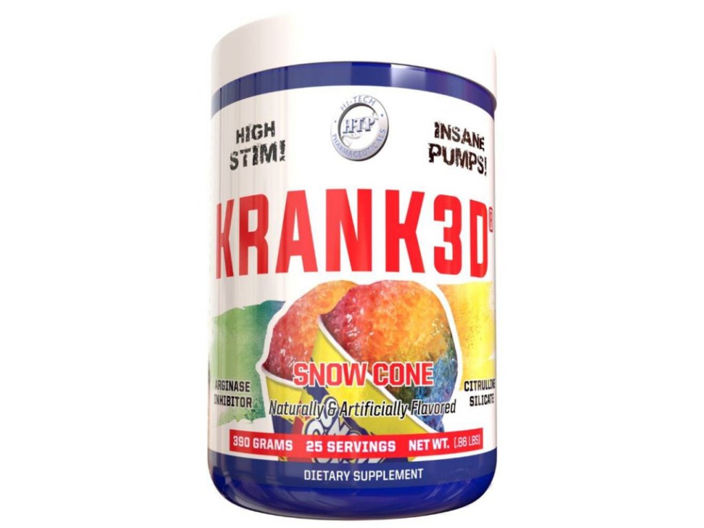 Hi-tech Krank3d 385g před tréninkem. Hi-tech Krank3d 385g předtréninovka s pumpovacími a stimulačními vlastnostmi. Hi-Tech Krank3d je pokročilý předtréninkový doplněk vytvořený pro lidi, kteří chtějí co nejlépe využít svůj čas v posilovně. Díky pečlivě vybraným složkám nabízí tento produkt mnoho výhod pro vaše tělo. Chcete-li, aby byl váš trénink vždy efektivní a odcházíte z posilovny s úsměvem od ucha k uchu, toto je produkt pro tebe!